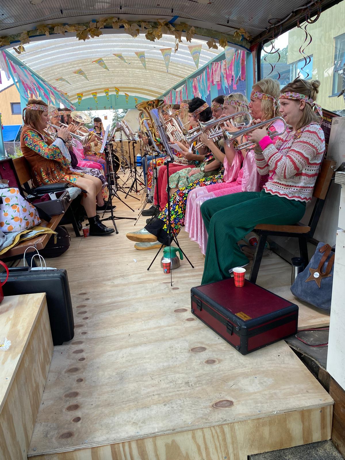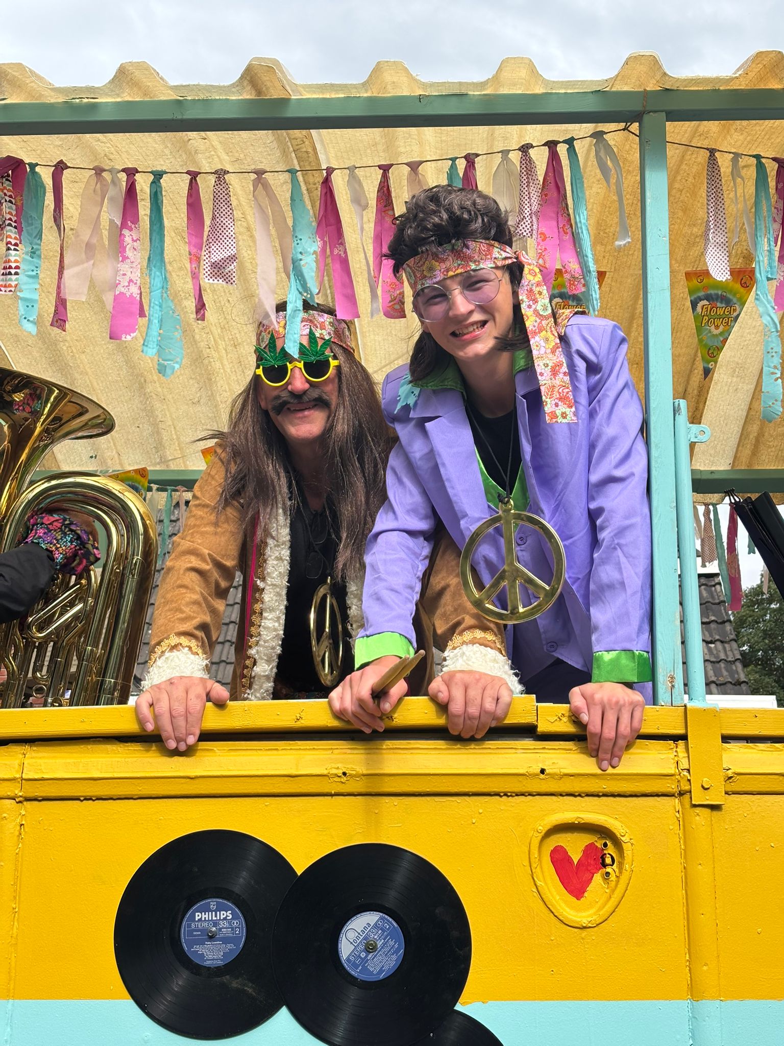 Het dorpsfeest ligt alweer even achter ons, maar wat hebben we er samen een prachtig feest van gemaakt! Ook wij, als muziekvereniging, kijken met veel plezier terug op deze dagen. Met een enthousiaste groep leden hebben we flink wat uurtjes gestoken in onze hippiebus. Geheel in stijl verkleed brachten we vrolijke muziek tijdens de optocht.